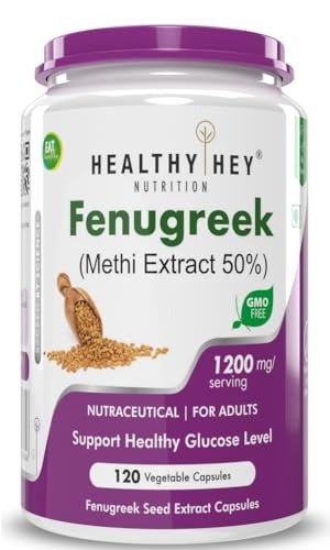 - HealthyHey Fenugreek Seed 50% Methi Extract – 1200mg, 120 Capsules