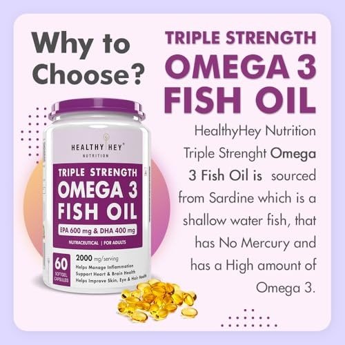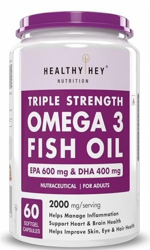 HealthyHey Nutrition Fish Oil Omega 3 60 Softgel For Women and Men | Triple Strength Fish Oil | Burpless, EPA 600 – DHA 400 Supplement – Fast Shipping to USA