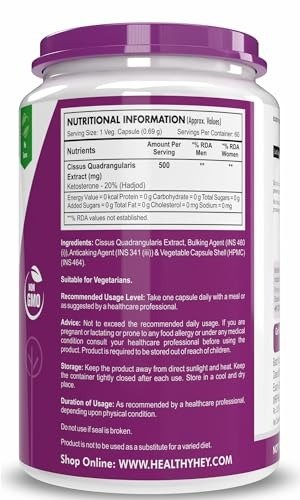 - HealthyHey Nutrition HADJOD – Extract of Cissus Quadrangularis – 60 Plant-Based Capsules