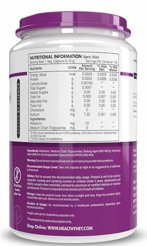 HealthyHey Nutrition Melatonin 10mg, Pack of 120 vegetable capsules – Promotes Sleep and Relaxation (10mg) – Fast Shipping to USA