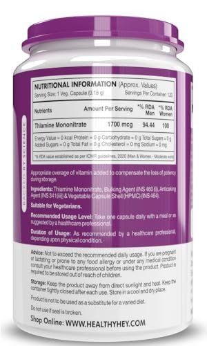 HealthyHey Nutrition Vitamin B1 Thiamine -120 Veg Capsules – Fast Shipping to USA