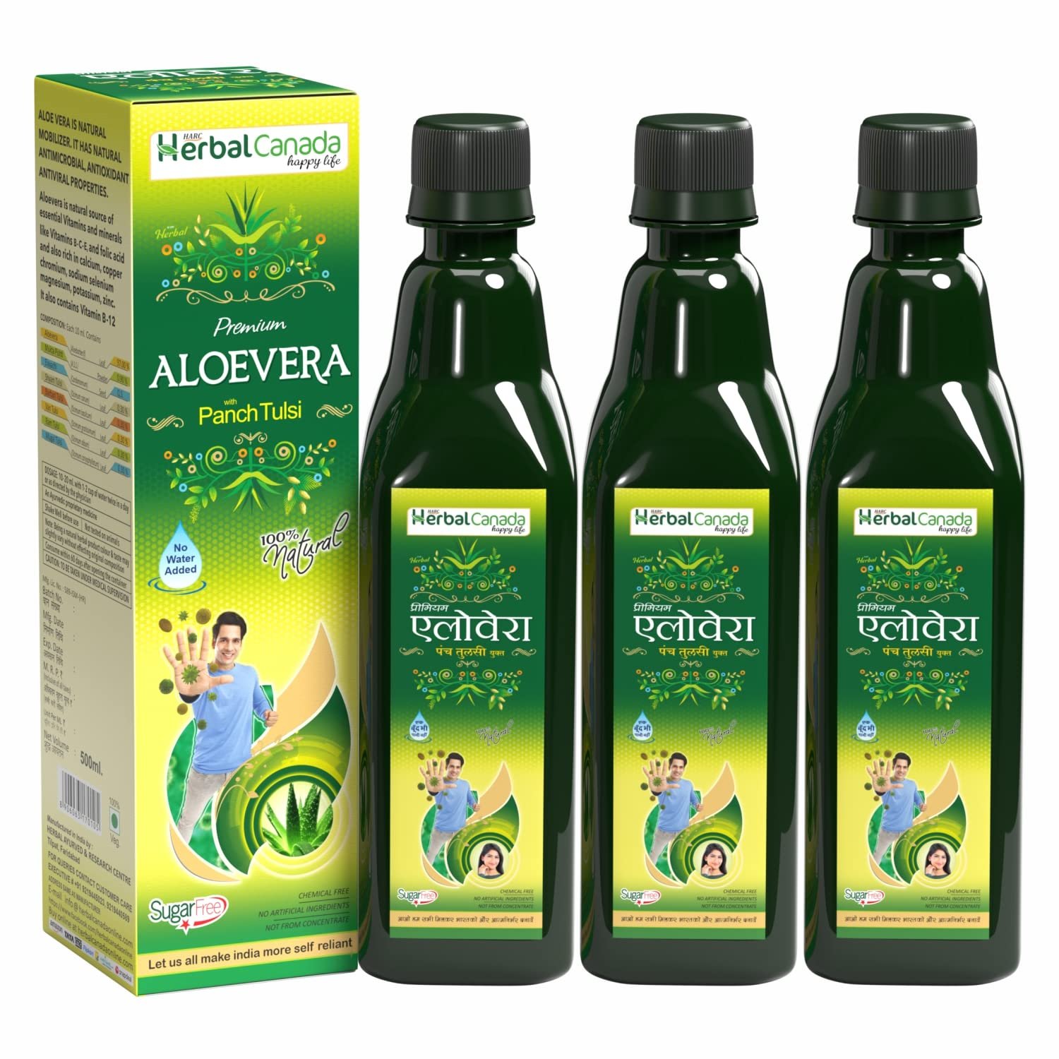 HERBAL CANADA Aloevera Ras | Pack of 3 | Good for Digestive Health, Skin and Liver Function | Naturally Antioxidant and Antimicrobial (1 LTR) – Fast Shipping to USA