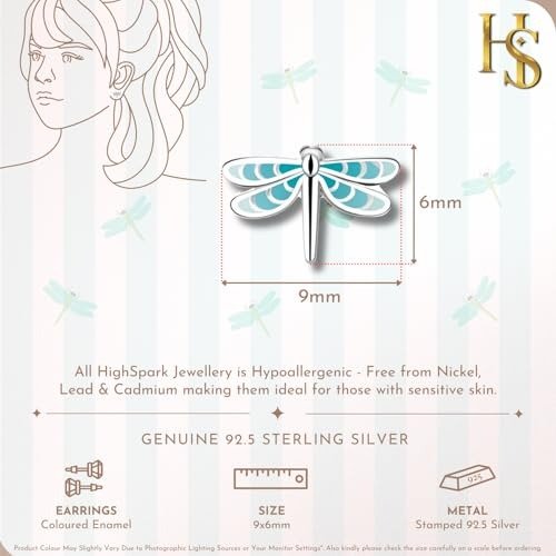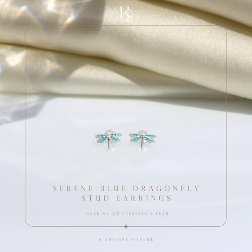 HighSpark 925 Sterling Silver Adorable Enamel Stud Earrings | 92.5% Pure Silver & Hypoallergenic | Charming Present for Women & Girls – Blue Dragonfly Wings