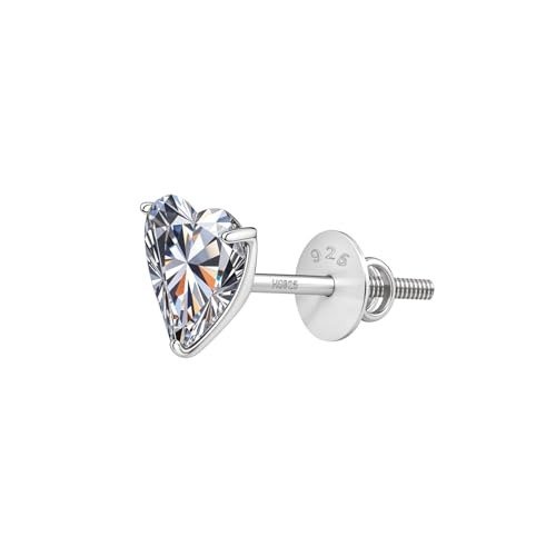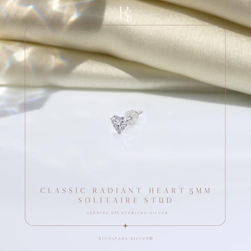 HIGHSPARK 925 Silver Heart Solitaire Screwback Stud Earring | Crafted from 92.5 Sterling Silver & Featuring Diamond-Like Brilliant Zirconia Top | Men’s Single Stud | 5mm