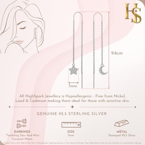 HIGHSPARK 925 Silver Mini Twinkling Star and Crescent Moon Solitaire Earrings | Crafted from 92.5 Sterling Silver with Diamond-like Radiance from Sparkling Zirconia | Charming Gift – Star and Moon Design