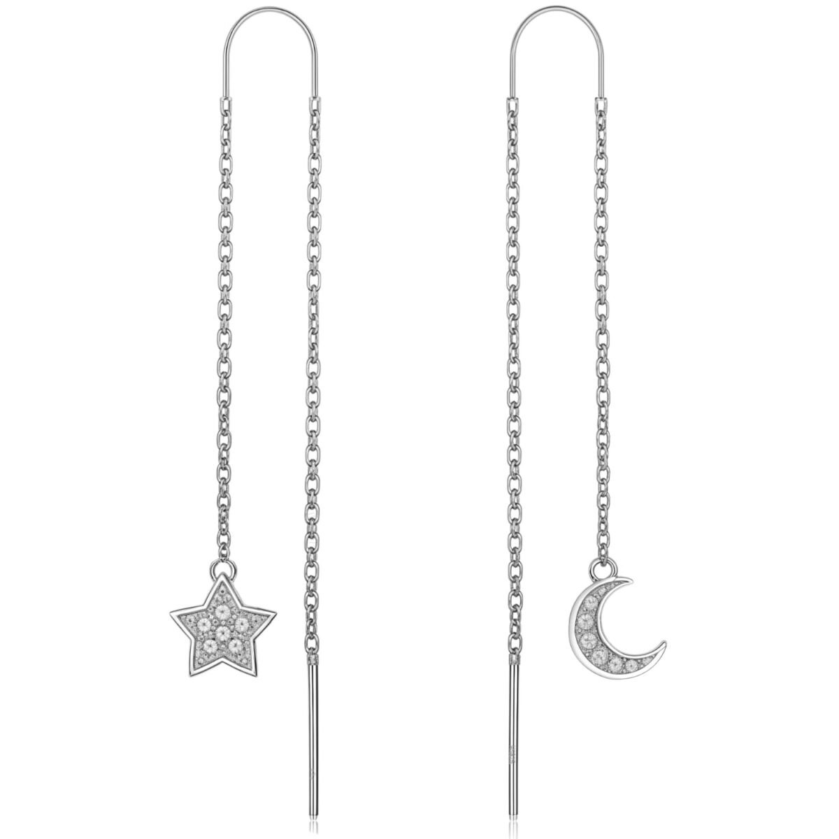 HIGHSPARK 925 Silver Mini Star & Moon Solitaire Earrings – Fast Shipping to USA & Canada