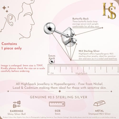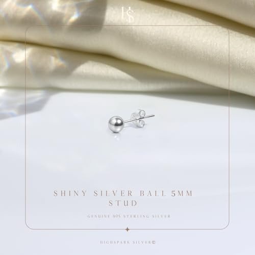 HIGHSPARK 925 Silver Ball Stud Earring | 92.5 Sterling Silver with a Brilliant Shine | Simple 5mm Ball Stud Earring for Men | Single Stud