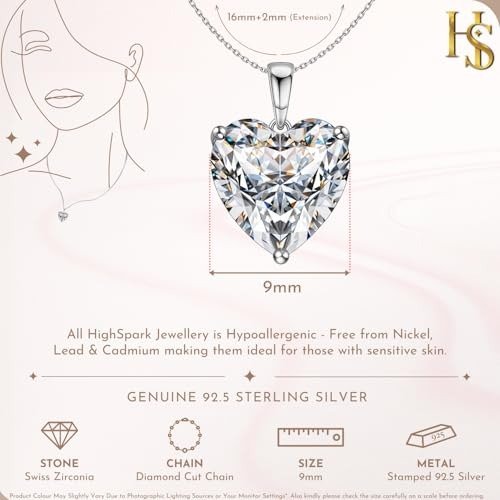 HighSpark 925 Silver Solitaire Heart Pendant with Chain For Women | 92.5 Sterling Silver & Diamond like Brilliance Sparkling Zirconia for that Stunning Shine | Lovely Gift – Silver 9mm – Fast Shipping to USA & Canada