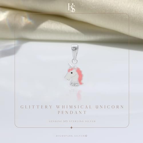 HighSpark 925 Silver Adorable Enamel Crystal Charm Pendant | 92.5 Sterling Silver with Diamond-like Radiance Sparkling Zirconia | Delightful Gift for Women and Girls – Crystal Charm Unicorn Face