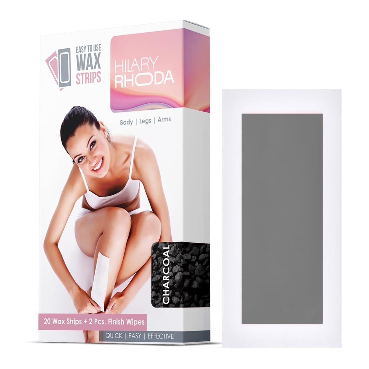 Hilary Rhoda Easy To Use Wax Strips | Gel Wax Hair Removal | Full Body Wax Strips for Arms,Legs & Body | Salon Like Results at Home Wax Strips | With 2 Finish Wipes | 20 Strips (Charcoal) – Fast Shipping to USA & Canada