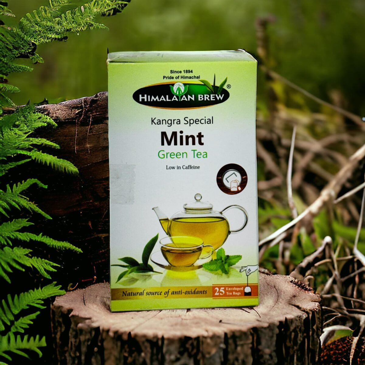 - Kangra Mint Green Tea comes in a pack of 25 bags, featuring premium green tea leaves blended with invigorating mint. Each tea bag is individually sealed to maintain freshness and provide convenience.