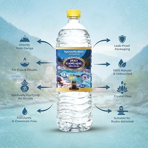 Authentic Gangajal for Puja Supplies – 500 ml is pure, sacred water from the Holy Ganga, meticulously preserved to uphold traditional Hindu rituals and spiritual customs. For generations, Gangajal has held a place of deep reverence in Indian culture, serving as a vital component in pooja ceremonies and religious observances. This holy water is ideal for daily worship, Rudra Abhishek, Shiv Puja, temple rituals, havan, yagna, griha pravesh, and a variety of other spiritual and religious functions. Its crystal-clear purity reflects its natural origin and spiritual significance. The Gangajal is securely packaged in a durable, leak-resistant bottle, ensuring safe storage and easy use in your home altar or temple. Suitable for households, priests, temples, and religious gatherings, this product is intended exclusively for ritual and ceremonial purposes-not for drinking or human consumption. Bring the divine essence of the Ganga into your home and elevate your spiritual practices with genuine Gangajal for Puja.