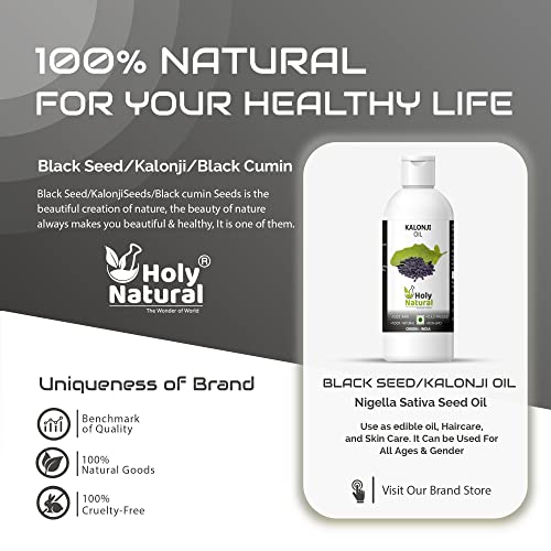 Holy Natural Kalonji Seeds Oil/Black Seed Oil/Nigella Sativa Oil (100ml) | For Edible, Hair and Skin Care | Weight loss, Immunity Booster | Hair Growth, Hair Fall | Skin Glow & Softness. – Fast Shipping to USA & Canada