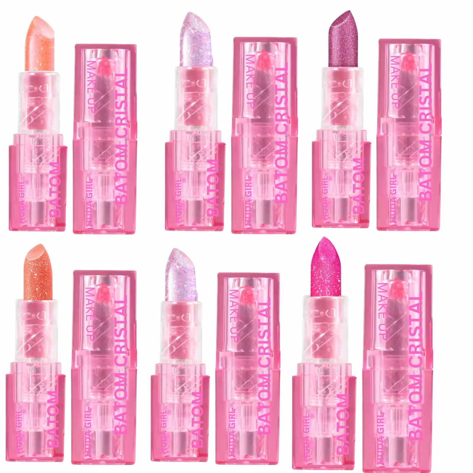 • Shimmer Enchantment: Revamp your appearance with our set of 6 shimmering lipsticks! Each glitter-infused lipstick provides a distinctive, color-shifting experience. These glossy lip products are perfect for women desiring a hint of magic and elegance in their beauty regimen.