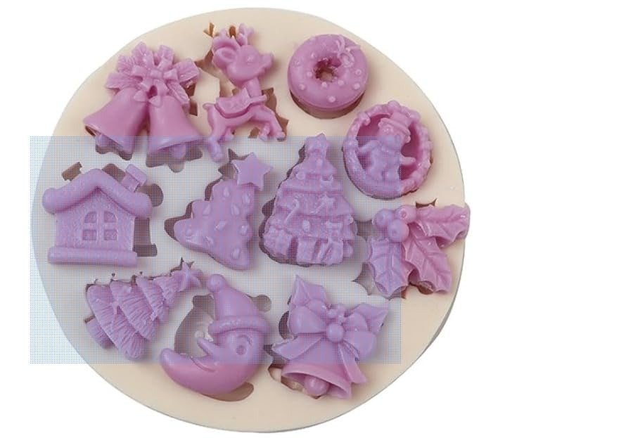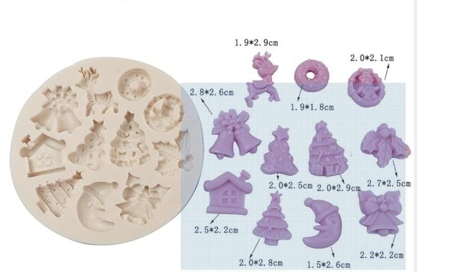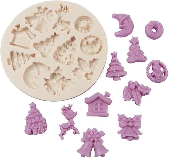 Husaini Mart Christmas Theme Silicone Fondant Mold, 9.5×9.5x1cm, Tree Reindeer Bell Ornaments Sugarcraft Mould for Chocolate, Cupcake, Cake Decorating – Fast Shipping to USA & Canada