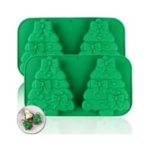 HUSAINIMART | 2 Slot Big Christmas Tree Silicone Mold 3D Xmas Tree Cake Moulds for Candle Making Christmas Cake Muffin Baking Tray Chocolate Jelly Dessert Candy Christmas Party Treats Gift Home Decoration – Fast Shipping to USA & Canada
