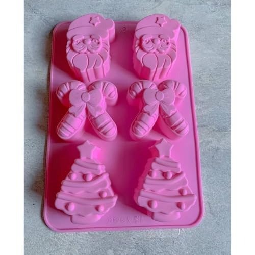 HUSAINIMART | 6 Cavity Christmas Silicone Mould 3D Christmas Molds Santa Claus Bells Xmas Tree Shape for DIY Baking Chocolate Candy Cake Jello Cupcake Muffin Jello Mousse Candle Wax Melts – Fast Shipping to USA & Canada