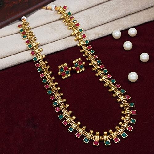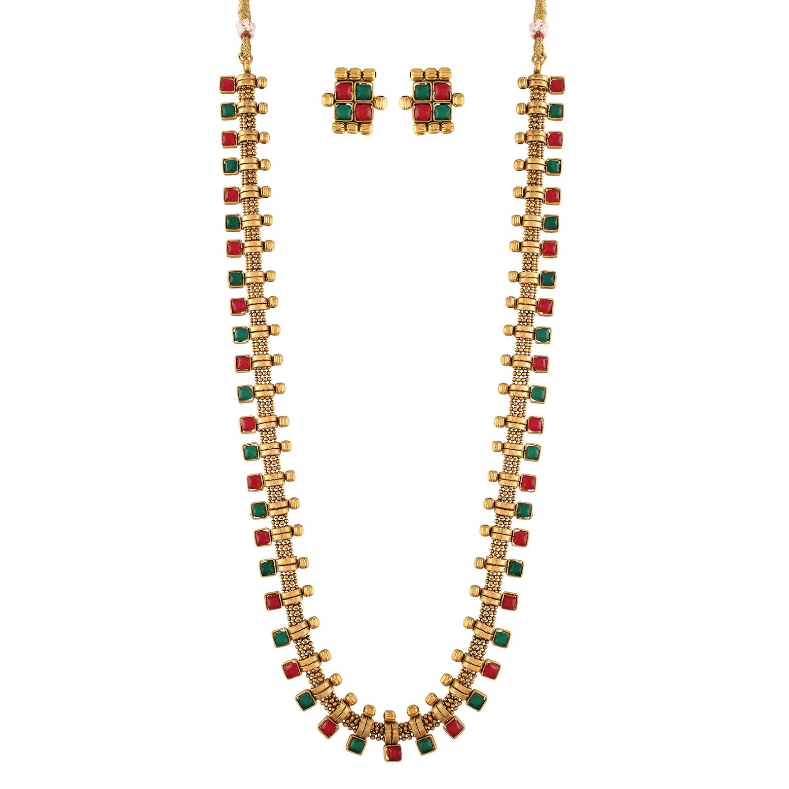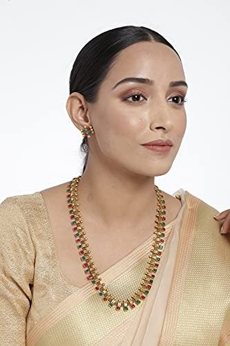 I Jewels 18K Gold Plated South Indian Multicolour Stone Long Necklace & Earrings (MC041) – Fast Shipping to USA & Canada