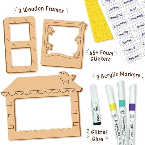 - INCLUDED IN THE SET: You?ll receive three wooden frames, three acrylic markers, one tube of glitter glue, and over 45 foam stickers-everything you need for imaginative and enjoyable crafting.