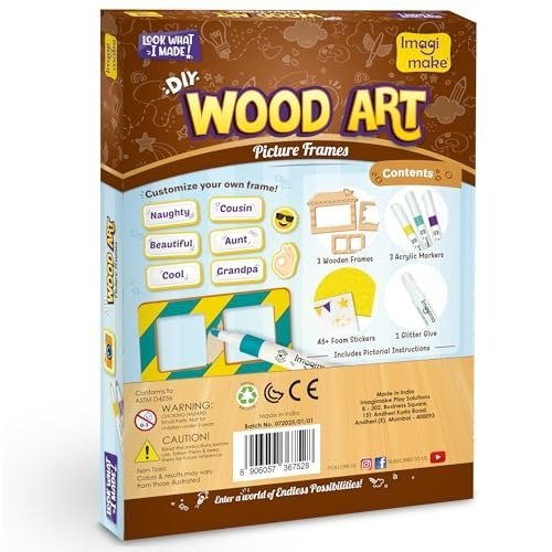 Imagimake DIY Wood Art Photo Frame | Make 3 Customized Photo Frames | Painting & Colouring Kit | Birthday Gift For Kids Age 5,6,7,8 | Toys For 6 Year Old Boy & Girl, Multicolor – Fast Shipping to USA & Canada