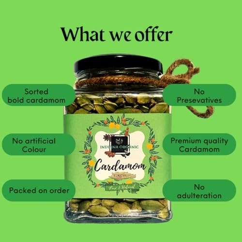- 120 grams of organic green cardamom (Elettaria cardamomum) from Indiana