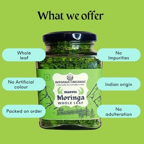 Be the first to review “Indiana Organic Moringa Whole Leaves Dry Leaf, Dried Drumstick Tree Leaves, Natural Super-Food ? For Making Herbal Tea, Smoothies, Soups – 35 Gram (Pack of 3) – Fast Shipping to USA & Canada” Cancel reply