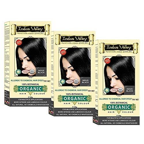 INDUS VALLEY 100% Botanical Organic Hair Color (Indus Black)- 120g*3=360g – Fast Shipping to USA & Canada