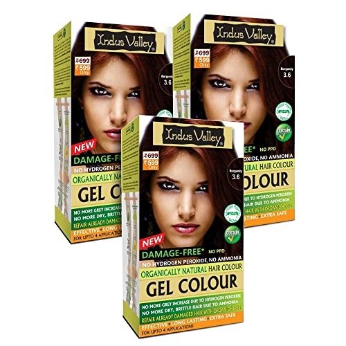 INDUS VALLEY Ammonia Free Natural Semi-Permanent Gel Hair Colour Burgundy 3.6 for Men & Women with 100% Grey Coverage & Long Lasting -220GM (pack of 3) – Fast Shipping to USA & Canada