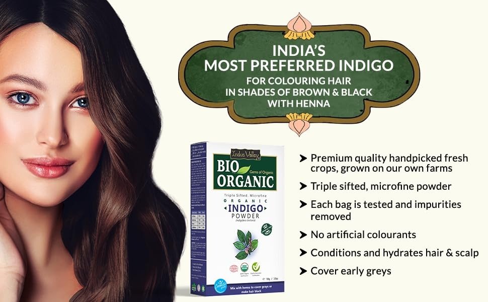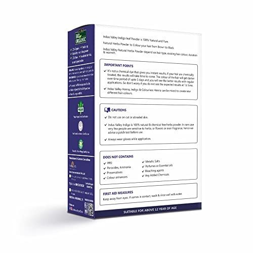 - ? **Certified Organic and Cruelty-Free**: Indus Valley Organic indigo powder holds certifications from ECOCERT and USDA Organic, guaranteeing compliance with rigorous organic standards. Additionally, it is cruelty-free and vegan, supporting a principled philosophy in beauty and hair care.
