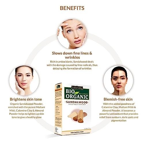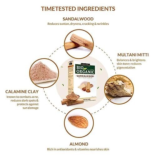 - ? **Organic Sandalwood Powder for Radiant Skin**: Attain a luminous and natural glow with this bio-organic sandalwood face pack powder. It aids in boosting skin brightness and fostering a vibrant, healthy complexion.