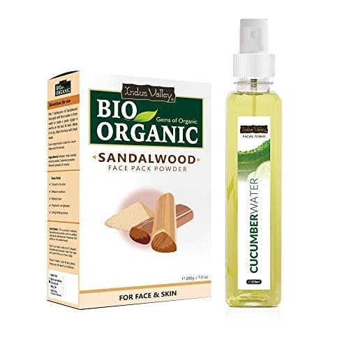 INDUS VALLEY Organic (Sandalwood Face Pack + Aloevera Cucumber Toner) Pack of 200g + 250ml – Fast Shipping to USA & Canada
