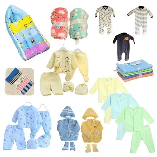 • Comprehensive Selection: This set features a range of baby wardrobe staples, including footed sleepers, bodysuits, shirts, pants, jackets, hats, and swaddle blankets, all adorned with charming patterns and delightful colors.