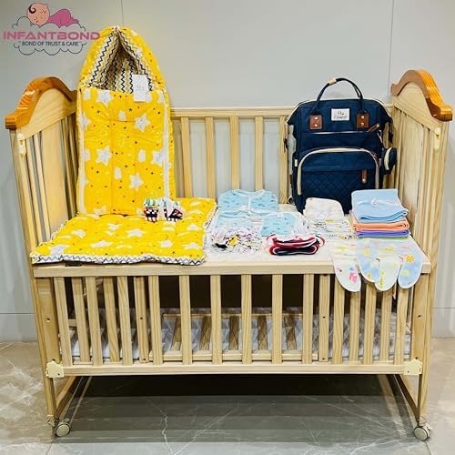 Presenting the Infantbond New Born Baby Premium Summer Essentials 54-in-1 Hospital Combo-an all-inclusive collection crafted to meet every need of your baby during the first six months. This extensive kit features 54 meticulously chosen items, all made from premium, baby-friendly materials to guarantee optimal comfort and safety. From lightweight, airy outfits and snug blankets to must-have toiletries, this set is ideal for keeping your newborn content and cozy throughout the summer. Perfect for first-time parents, it eliminates the hassle of hospital packing and ensures you?re thoroughly equipped for your little one?s arrival. Thoughtfully assembled, this combo also makes a wonderful gift for expectant parents, offering a practical and comprehensive solution for newborn care. With Infantbond, you can rest assured that you?re fully prepared to welcome your baby into the world.