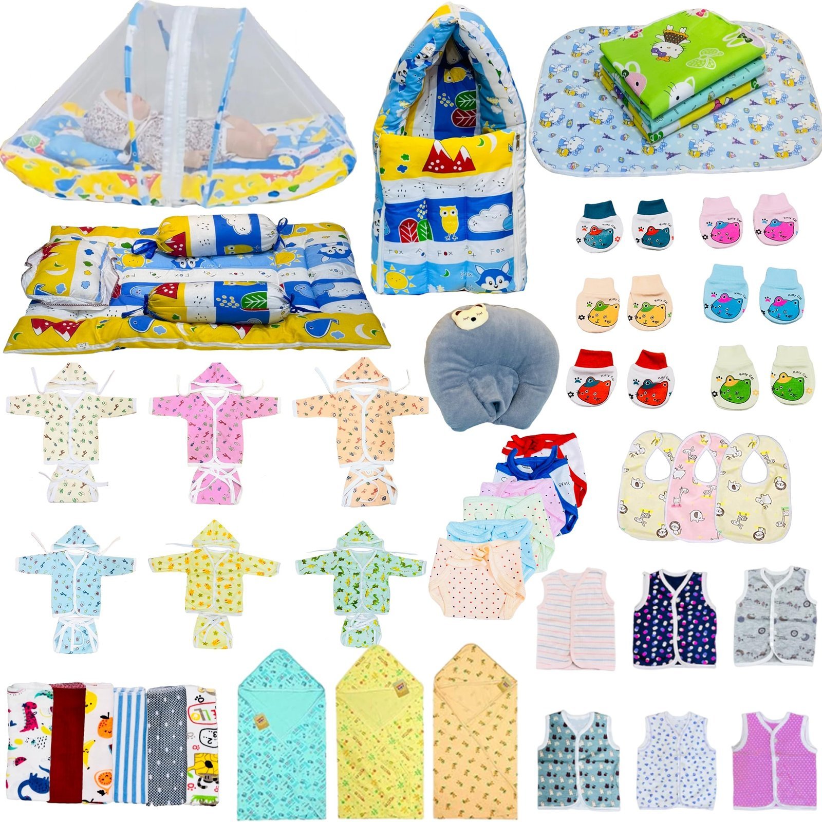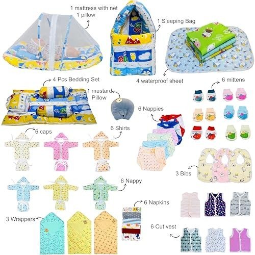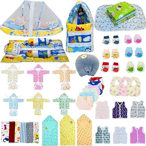 Infantbond by Fareto offers an all-inclusive 60-piece baby essentials combo pack, thoughtfully curated to cater to every need of newborns and new mothers. This complete hospital kit features a range of clothing, bedding, and hygiene items, making it ideal for both baby boys and girls. Crafted from soft, breathable cotton, each product is gentle on your baby?s sensitive skin. Whether you?re assembling your maternity hospital bag, searching for a thoughtful newborn gift, or organizing your baby?s nursery, this versatile combo pack is the perfect solution.