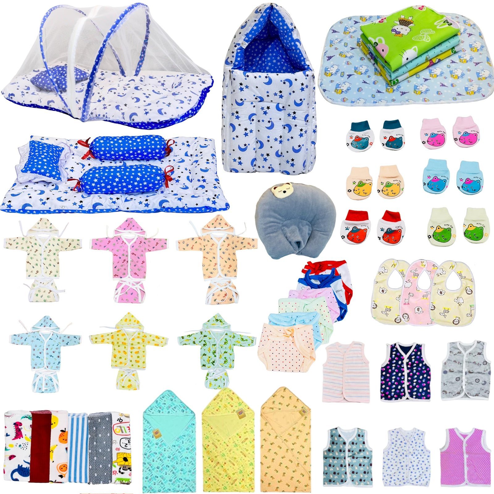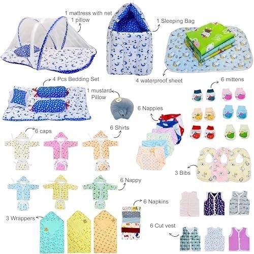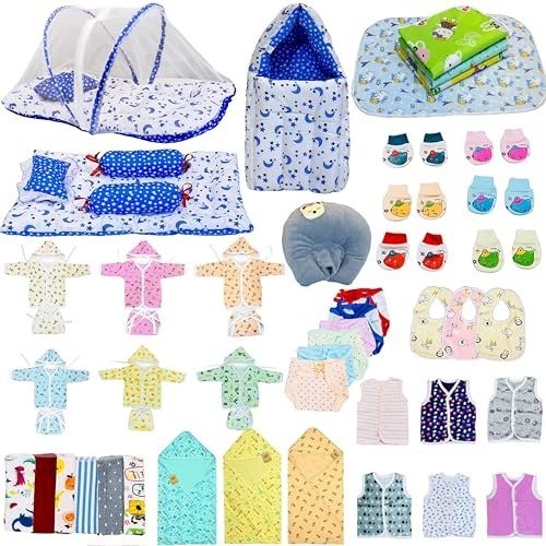 Infantbond by Fareto offers an all-inclusive 60-piece baby essentials combo pack, thoughtfully curated to cater to every need of newborns and new mothers. This versatile hospital kit features a range of clothing, bedding, and hygiene items, making it ideal for both baby boys and girls. Crafted from soft, breathable cotton, each product is gentle on your baby?s sensitive skin. Whether you?re assembling a maternity hospital bag, searching for a thoughtful newborn gift, or outfitting your baby?s nursery, this comprehensive set provides everything you need.