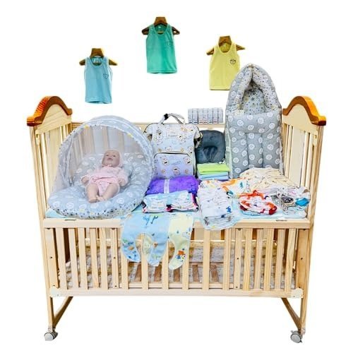 • BEDDING SET: Features a baby carry bag, a mattress with a protective net, four dry sheets, and three muslin swaddles for added comfort.