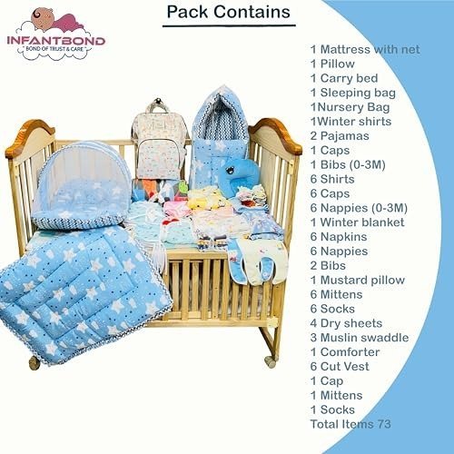 Infantbond Newborn Baby Premium Quality 73-in-1 Monsoon & Semi-Winter Hospital Essentials Nursery Bag ? the ultimate all-in-one care package crafted especially for infants aged 0-6 months. This extensive collection guarantees you have every essential item required to nurture your baby throughout the vital monsoon and semi-winter periods. The Infantbond Newborn Baby Hospital Essentials Nursery Bag serves as your complete preparation kit, ensuring your little one?s safety and comfort as the weather shifts. Perfect for both home use and travel, this 73-in-1 set keeps you fully equipped and ready for any situation.