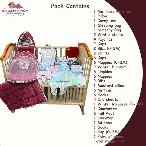 Infantbond Newborn Baby Premium Quality 73-in-1 Monsoon & Semi-Winter Hospital Essentials Nursery Bag ? the ultimate all-in-one care package crafted especially for infants aged 0-6 months. This extensive collection provides every essential item needed to nurture your baby throughout the vital monsoon and semi-winter periods. The Infantbond Newborn Baby Hospital Essentials Nursery Bag serves as your complete preparation kit, ensuring your little one?s safety and comfort as the weather shifts. Perfect for both home use and travel, this 73-in-1 set guarantees you?re fully equipped for any situation.