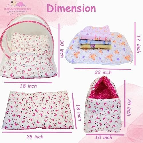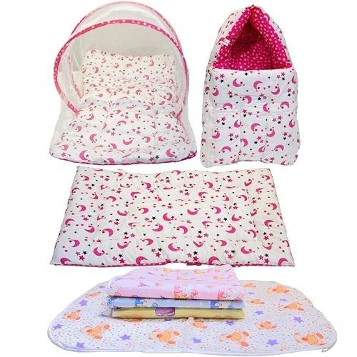 - MATTRESS WITH NET: Shields your baby from mosquitoes and insects | SLEEPING BAG: Convenient for carrying your baby comfortably in a portable bag | BEDDING SET: Ensures restful sleep with a supportive neck pillow and two side bolsters for added comfort