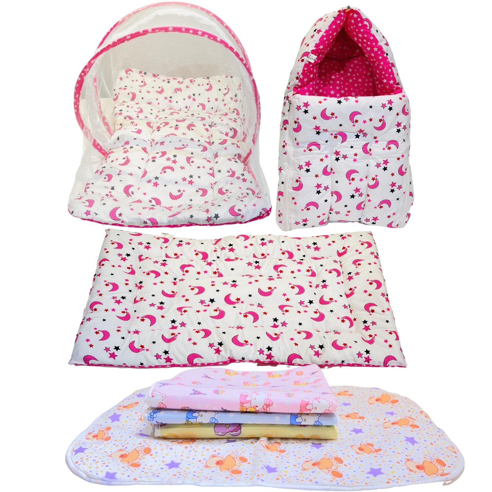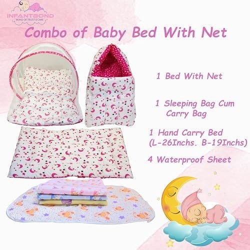Infantbond Baby Bed with Net & 4 Waterproof Sheets (Moon Pink) ? Fast Shipping to USA & Canada