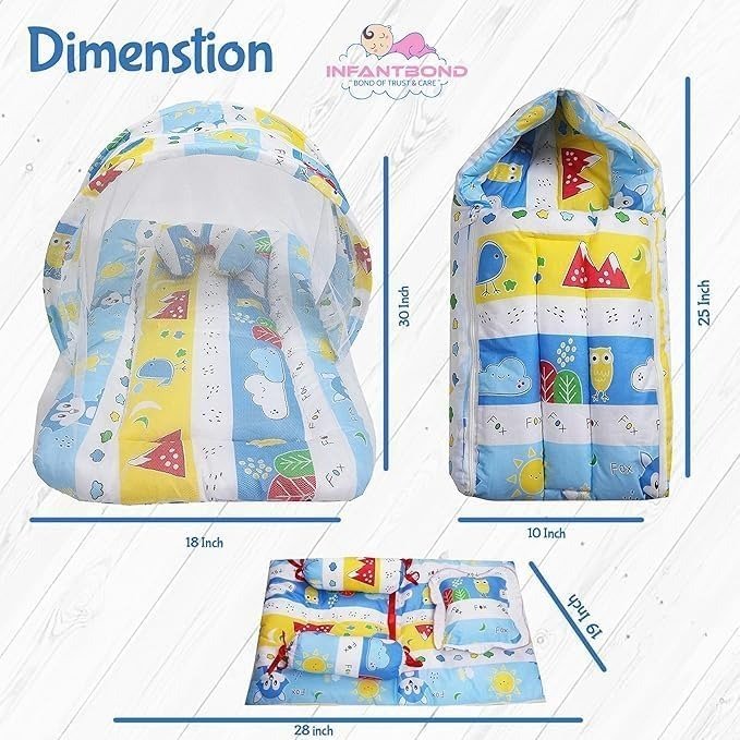 - MATTRESS WITH NET: Shields your baby from mosquitoes and insects | SLEEPING BAG: Convenient for carrying your baby comfortably | BEDDING SET: Ensures restful and peaceful sleep