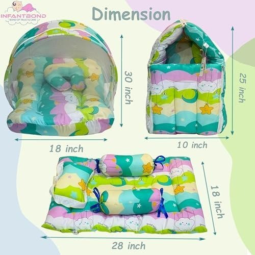 - MATTRESS WITH NET: Protect Baby From Mosquitos And Insects | SLEEPING BAG: Helpful To Carry Baby In Comfy Carry Bag | BEDDING SET: Provide Sound Sleep