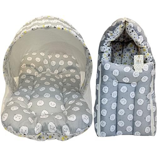 Infantbond Cotton Sleeping Mattress with Net (Sheep Gray) ? Fast Shipping to USA & Canada