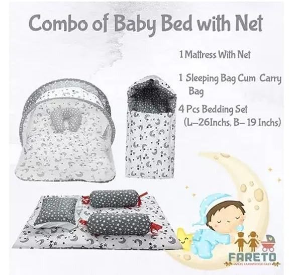 Infantbond Designer Mattress with Net & Carry Bed (Moon Grey) ? Fast Shipping to USA & Canada