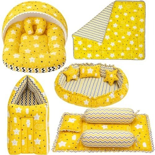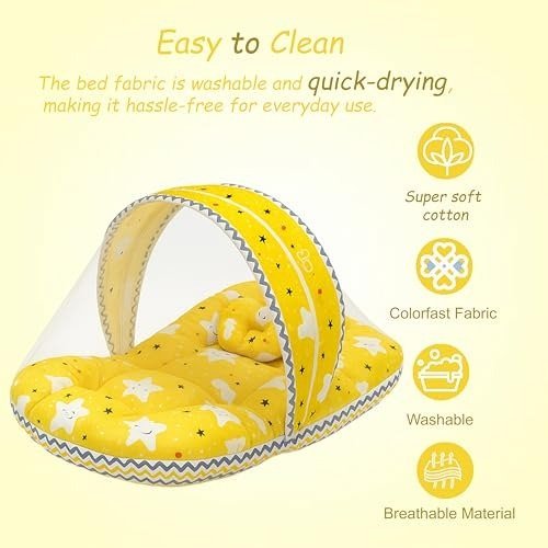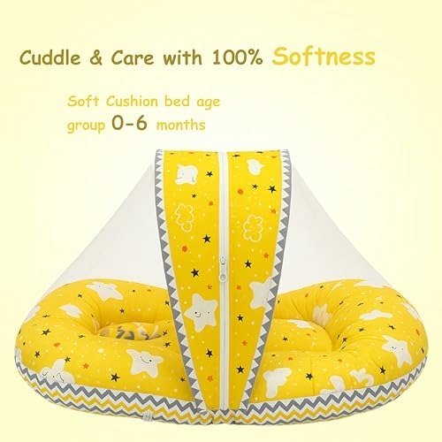 Infantbond Newborn Bedding with Net & Blanket (Yellow Cloud) ? Fast Shipping to USA & Canada