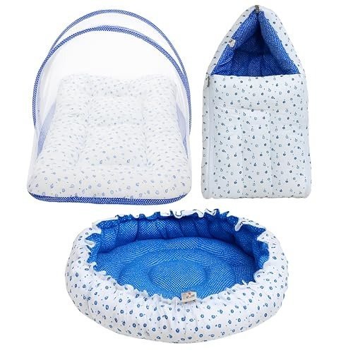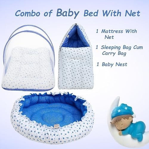 Infantbond Reversible Nest Mattress with Net & Carry Bag (Blue Heart, 9 Items) ? Fast Shipping to USA & Canada