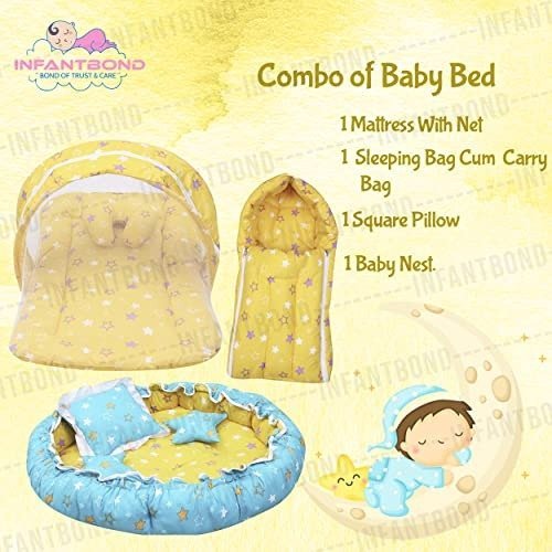 Infantbond Reversible Nest Mattress with Net (Yellow) ? Fast Shipping to USA & Canada