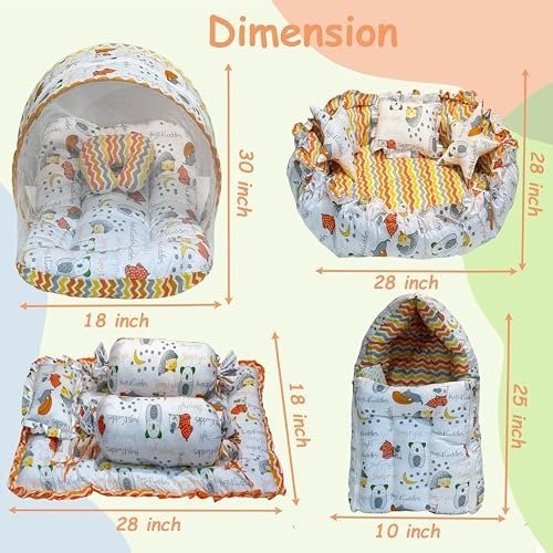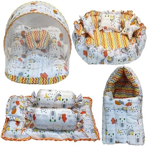 - Pack Contains: 1 Reversible Baby Nest | 1 Mattress with Mosquito Net | 1 Carry Bag | 1 Portable Handheld Bed | 1 Bolster Set