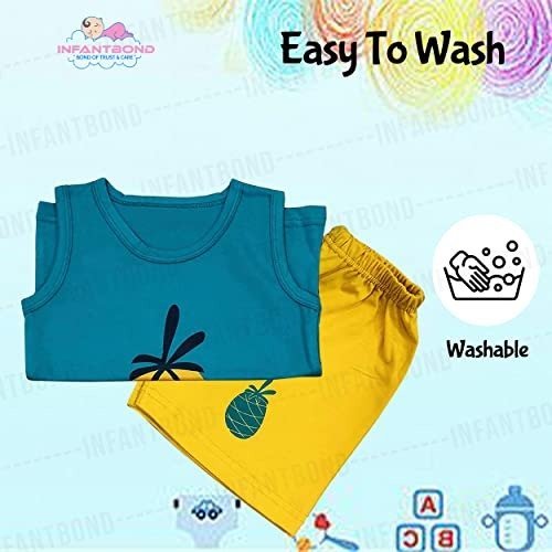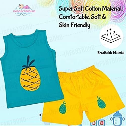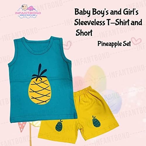 Presenting the Infantbond Unisex Baby Sleeveless T-Shirt and Shorts Set, designed for toddlers aged 2 to 3 years. This adorable ensemble features a playful pineapple motif and is made from gentle, breathable 100% cotton for lasting comfort and resilience. The sleeveless tee pairs effortlessly with elastic-waist shorts, making dressing and washing a breeze-simply toss in the machine for easy care. Suitable for both boys and girls, this matching set makes a wonderful gift for baby showers, birthdays, or any memorable event.
