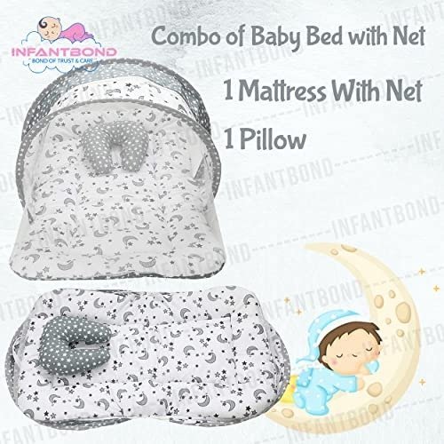 Infantbond Super Soft Mattress with Net (Star & Moon Grey) ? Fast Shipping to USA & Canada